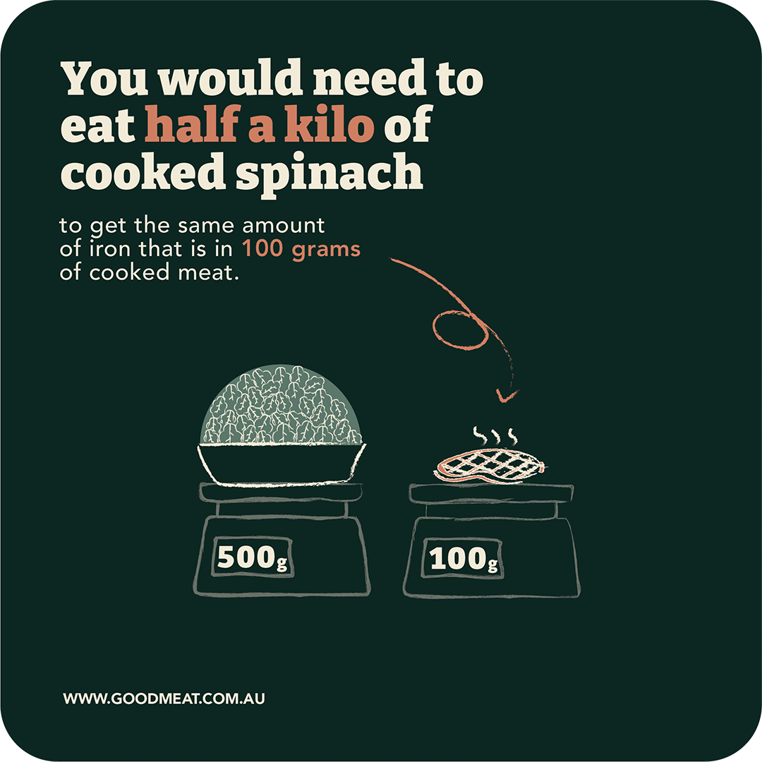 Beef and lamb contain more iron and zinc than pork, chicken and fish and is easier for the body to absorb than the iron and zinc found in plant foods. Vegetarians and vegans require 180% of the recommended daily intake (RDI) for iron and 150% for zinc, due to lower absorption rates from plant-based sources compared to highly bioavailable red meat.