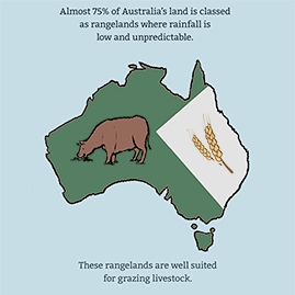Almost 75% of Australia’s land is classed as rangelands where rainfall is low and unpredictable.